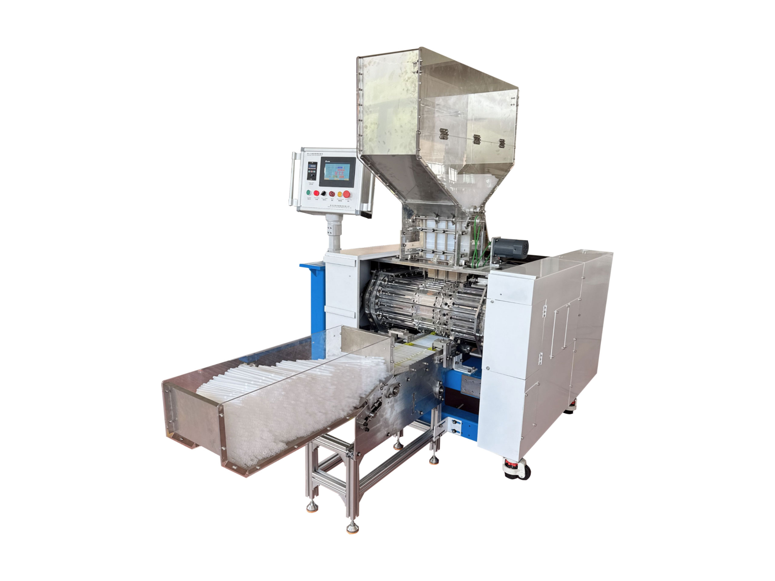 ML23系列全自動(dòng)可彎吸管成形機(jī)是將直管坯加工成可彎吸管的一種自動(dòng)化設(shè)備。 直管坯加入成形機(jī)上部料斗,經(jīng)45組成形牙針和1對(duì)成形牙輪連續(xù)動(dòng)作后將彎管成品自動(dòng)輸送出來,具有連續(xù)高效生產(chǎn)的能力。通過更換部分零件,可以實(shí)現(xiàn)多種孔徑規(guī)格彎管的生產(chǎn)。